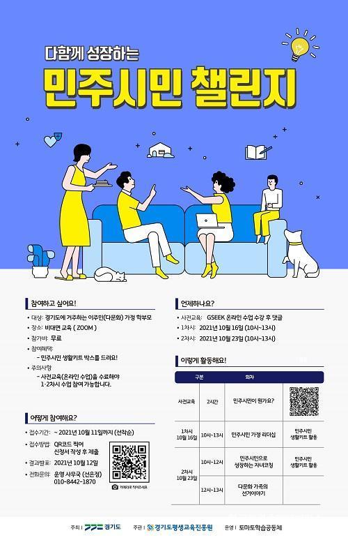 [È£ÅÚ°ü±¤·¹Á®½Å¹®´º½º=¹èÁöÀ± ±âÀÚ] °æ±âµµÆò»ý±³À°ÁøÈï¿øÀÌ ¹ÎÁֽùα³À° ÇÁ·Î±×·¥¿¡ Âü¿©ÇÒ ´Ù¹®È­ °¡Á¤ Çлý°ú Çкθ𸦠10¿ù 13ÀϱîÁö ¸ðÁýÇÕ´Ï´Ù.