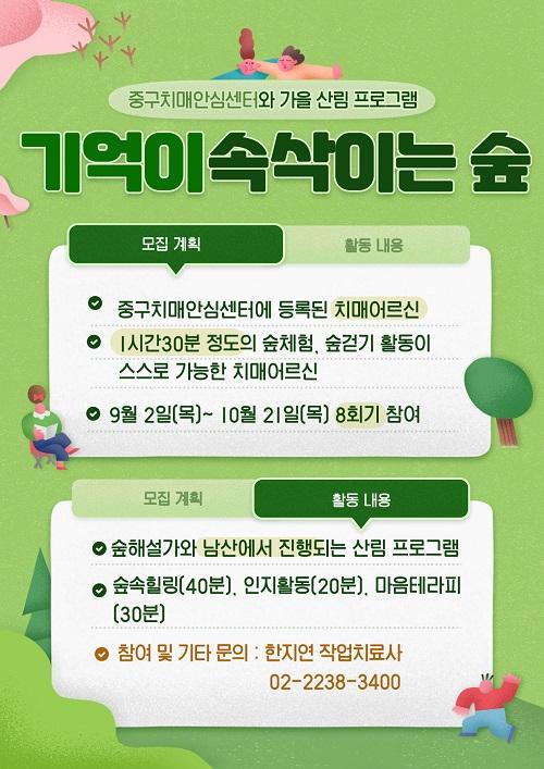 [È£ÅŰü±¤·¹Á®½Å¹®´º½º=Â÷¼­À± ±âÀÚ] ¼­¿ï½Ã Áߺΰø¿ø³ìÁö»ç¾÷¼Ò´Â Áß±¸Ä¡¸Å¾È½É¼¾ÅÍ¿Í ÇÔ²² ÀϹݡ¤°æµµÀÎÁöÀå¾Ö ³ëÀÎ, Ä¡¸Å ³ëÀÎÀ» µ¹º¸´Â °¡Á·À» ´ë»óÀ¸·Î °¡À»Ã¶ ³²»êµÑ·¹±æ »ê¸² Ä¡À¯ ÇÁ·Î±×·¥À» ³»ÀϺÎÅÍ 10¿ù ÇÑ ´Þ°£ ¿î¿µÇÕ´Ï´Ù. À̹ø Çà»ç´Â Äڷγª19 Àå±âÈ­¡¦