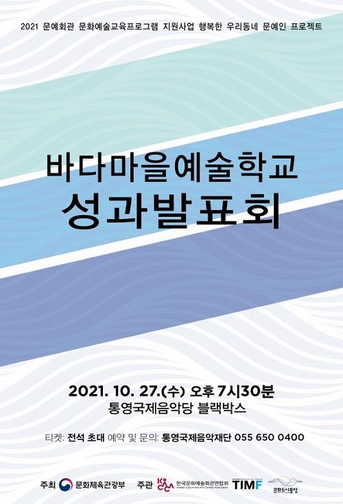 [È£ÅÚ°ü±¤·¹Á®½Å¹®´º½º=¼­È¿°æ ±âÀÚ] Å뿵±¹Á¦À½¾ÇÀç´ÜÀÌ 27ÀÏ ¿ÀÈÄ 7½Ã 30ºÐ Å뿵±¹Á¦À½¾Ç´ç ºí·¢¹Ú½º¿¡¼­ '¹Ù´Ù¸¶À» ¿¹¼úÇб³ ¼º°ú¹ßǥȸ'¸¦ ¿±´Ï´Ù. ¹Ù´Ù¸¶À» ¿¹¼úÇб³´Â Çѱ¹¹®È­¿¹¼úȸ°ü¿¬ÇÕȸ°¡ ÁÖ°üÇÏ´Â 'ÇູÇÑ ¿ì¸®µ¿³× ¹®¿¹È¸°ü ÇÁ·ÎÁ§Æ®'·Î Å뿵±¹Á¦À½¾Ç¡¦