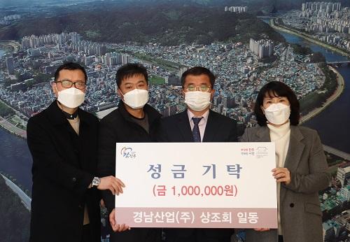 [È£ÅÚ°ü±¤·¹Á®½Å¹®´º½º=Á¤ÁöÀ± ±âÀÚ] °æ³²»ê¾÷(ÁÖ)(´ëÇ¥ Á¶Çö¼Û) ¹× Á÷¿ø »óÁ¶È¸(ȸÀå ÃÖÁ¤³²)´Â Áö³­ 8ÀÏ ¼º±Ý 100¸¸¿øÀ» ÁøÁֽú¹ÁöÀç´Ü(ÀÌ»çÀå À̼º°©)¿¡ Àü´ÞÇß½À´Ï´Ù. À̳¯ ¿­¸° ±âŹ½Ä¿¡¼­ ÃÖÁ¤³² »óÁ¶È¸ÀåÀº ¡°È¸¿øµéÀÇ ÀÛÀº ³ª´® ½ÇõÀÌ ´õºÒ¾î ÇÔ²² »ç´Â »ç¡¦